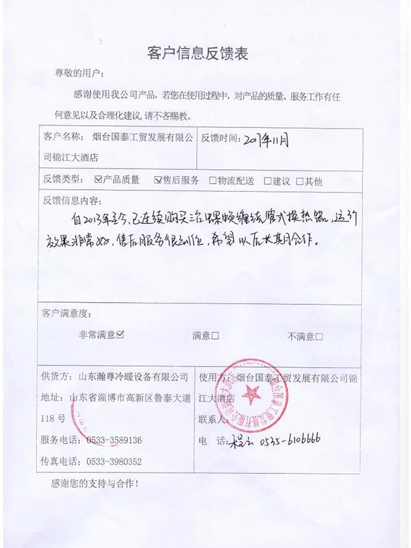 山東瀚尊冷暖設備有限公司坐落在美麗的齊國古都---淄博,是一家以換熱(冷凝)產(chǎn)品研發(fā)、生產(chǎn)、營銷為一體的企業(yè);自2008年以來,通過與中外知名熱力設備制造商合作以及自主探索和創(chuàng)新,于2010年成功研制生產(chǎn)出了公司第一臺螺旋纏繞管式換熱器;同時,公司依托自身強大的技術力量和研發(fā)能力,于2016年成功研制生產(chǎn)無死角無菌級雙管板式換熱器,近年來,公司努力走在中國換熱器行業(yè)的前列,致力于創(chuàng)造民族品牌,為用戶提供專業(yè)技術支持與服務......